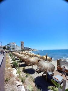 Das Apartamento Cala de Mijas a pie de Playa in Málaga bietet klimatisierte Unterkünfte mit einem Pool und Meerblick. Es befindet sich nur 200 Meter vom Strand Playa de Calahonda - Rocas del Mar entfernt. Dieses Apartment direkt am Strand verfügt über kostenfreies WLAN und einen kostenfreien Privatparkplatz und umfasst eine großzügige Einheit mit zwei Schlafzimmern und zwei Badezimmern.