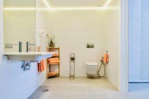 Zu den Serviceleistungen zählen kostenfreie Parkplätze am Haus sowie die Möglichkeit zur Direktbuchung eines Mietwagens über die Unterkunft. Hervorzuheben sind barrierefreie Merkmale: Das gesamte Apartment ist rollstuhlgerecht gestaltet und befindet sich ebenerdig mit eigenem Eingang für Privatsphäre und einfachen Zugang. Das Badezimmer verfügt über eine moderne bodengleiche Dusche ohne Stufe sowie kostenlose Pflegeprodukte wie Shampoo und Duschgel, zusätzlich sind Haartrockner, Bidet und WC vorhanden.