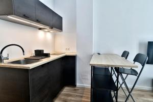 Die Unterkunft umfasst ein Schlafzimmer, ein Wohnzimmer mit Schlafsofa sowie ein Badezimmer mit Dusche, Haartrockner, Shampoo und Duschgel. Die komplett ausgestattete Küche beinhaltet einen Backofen, Herdplatte, Mikrowelle, Kühlschrank, Geschirrspüler sowie Tee- und Kaffeezubereitungsmöglichkeiten. Zu den weiteren Annehmlichkeiten im Zimmer zählen Klimaanlage, Heizung, Bügeleisen mit Bügelbrett, Kleiderschrank sowie Handtücher und Bettwäsche, der Bodenbelag besteht aus Parkett.