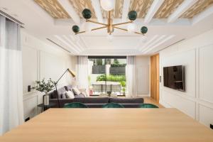 Das geräumige Apartment umfasst drei Schlafzimmer und drei Badezimmer, ausgestattet mit Toilettenartikeln wie Shampoo, Duschgel und Haartrockner. Zur Ausstattung gehören individuell regulierbare Klimaanlagen, Holzböden, schallisolierte Zimmer sowie ein Bügeleisen mit Bügelbrett, Wäscheständer, Kleiderschrank sowie eine Sitzecke mit Sofa und Schreibtisch. Die Unterkunft ist rollstuhlgerecht gestaltet und verfügt über eine Waschmaschine für zusätzlichen Komfort.