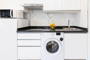 L'appartement comprend un coin cuisine entièrement équipé avec plaque de cuisson, réfrigérateur, micro-ondes, grille-pain, cafetière, bouilloire électrique et table à manger. Le studio insonorisé dispose aussi d’un chauffage, d’un lave-linge ainsi que d’un espace salon comprenant un canapé-lit et une armoire. La salle de bains privative est pourvue d’articles de toilette gratuits tels que shampoing et savon corporel ainsi que d'un sèche-cheveux.