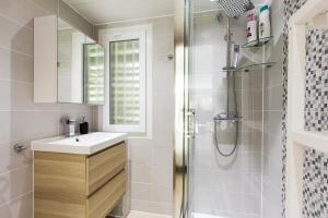 Im Apartment finden Gäste ein Schlafzimmer mit einem Bett sowie ein eigenes Badezimmer mit Dusche und Haartrockner vor. Die voll ausgestattete Küche beinhaltet moderne Geräte wie Kühlschrank, Backofen, Geschirrspüler, Mikrowelle, Toaster sowie Tee- und Kaffeezubehör. Weitere Ausstattungsmerkmale sind Klimaanlage, Heizung, Fliesenboden, Bügeleisen und Waschmaschine. Zur Unterhaltung steht ein Flachbildfernseher zur Verfügung, im Wohnbereich gibt es ein Sofa.