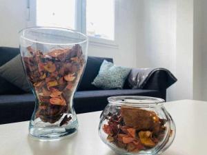 Die Unterkunft umfasst ein klimatisiertes Schlafzimmer mit zwei Betten und synthetischen Kopfkissen ohne Federn. Die voll ausgestattete Kochnische beinhaltet einen Backofen, Herdplatte, Mikrowelle, Kaffeemaschine, Wasserkocher sowie Toaster und sämtliches notwendige Küchenzubehör für Selbstversorgeraufenthalte. Den Gästen stehen zudem ein Essbereich sowie eine Sitzecke mit Schlafsofa und Flachbildfernseher zur Verfügung, außerdem sind Bügeleisen und Bügelmöglichkeiten vorhanden.