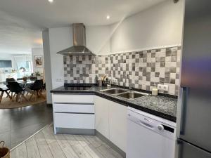 Das geräumige Apartment verfügt über zwei Schlafzimmer mit insgesamt fünf Betten sowie zwei Badezimmer mit begehbaren Duschen und Badewannen. Zur Ausstattung gehört eine voll ausgestattete Küche mit Herd, Backofen, Geschirrspüler, Mikrowelle, Kühlschrank und Kaffeemaschine. Weitere Annehmlichkeiten sind Klimaanlage, Heizung, Bügeleisen mit Bügelbrett, Kamin, Sitzbereich mit Sofa sowie ein Arbeitstisch. Handtücher und Bettwäsche werden bereitgestellt, für zusätzlichen Komfort sorgen allergikerfreundliche Kissen ohne Federn.