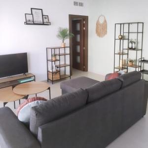 Das Apartment umfasst ein Schlafzimmer und ein klimatisiertes Wohnzimmer mit Fliesenboden und Schlafsofa. Die voll ausgestattete Küche verfügt über moderne Geräte einschließlich Backofen, Herdplatte, Kühlschrank, Mikrowelle, Toaster sowie Kaffee- und Teezubereitungsmöglichkeiten. Zur zusätzlichen Ausstattung gehören Waschmaschine und Trockner. Das Badezimmer ist ausgestattet mit Dusche oder Badewanne/Dusche-Kombination, Haartrockner sowie Shampoo und Duschgel.