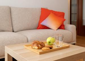 Inside the apartment, guests will find four beds spread across two bedrooms, complemented by soundproofed walls to ensure a peaceful stay. The fully equipped kitchen features modern appliances such as a refrigerator, dishwasher, microwave, toaster, coffee machine as well as tea and coffee making facilities. Additional conveniences include an iron with ironing board, washing machine, clothes drying rack, heating system and individually controlled air conditioning for personalized comfort.