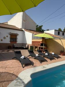 Located in Málaga, Cortijo Los Frailes is a holiday home featuring a private outdoor pool and free WiFi throughout the property. This spacious accommodation includes one room with four bedrooms, two bathrooms, and offers views from its terrace as well as access to a picnic area.