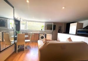 Die kürzlich renovierte Costa Paradise Suites - Málaga Wohnung mit eigenem Strandbereich befindet sich im Stadtteil Este von Málaga, nur 600 Meter vom Strand Baños del Carmen entfernt. Diese großzügige Unterkunft umfasst ein Zimmer und bietet beeindruckende Ausblicke auf das Meer und die Berge.