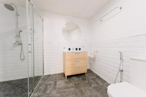 Jedes Apartment verfügt über ein oder zwei separate Schlafzimmer sowie ein Wohnzimmer. Die Einheiten sind mit voll ausgestatteten Küchen ausgestattet, die Kühlschränke, Geschirrspüler, Mikrowellen, Kaffeemaschinen, Wasserkocher und Toaster umfassen. Zur Ausstattung gehören Flachbildfernseher, Waschmaschinen, Sitzbereiche und schallisolierte Wände. Die Badezimmer sind mit begehbaren Duschen ohne Stufen ausgestattet und bieten kostenlose Pflegeprodukte wie Shampoo, Conditioner und Duschgel.