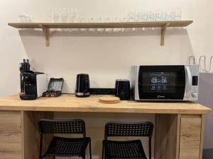 В номере имеется одна спальня с удобной кроватью, оснащённая системой отопления и кондиционирования для круглогодичного комфорта. Гости могут пользоваться полностью оборудованной мини-кухней для приготовления пищи, а также стиральной машиной для дополнительного удобства.