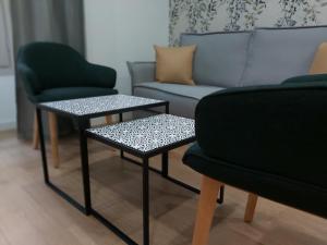 Die Unterkunft verfügt über ein separates Schlafzimmer sowie einen Wohnraum mit zwei Betten. Moderne Annehmlichkeiten wie Waschmaschine, schallisolierte Räume, individuell regulierbare Klimaanlage, Bügeleisen, Kleiderschrank oder Garderobe, Babybett auf Anfrage, Schlafsofa sowie Handtücher und Bettwäsche werden bereitgestellt.