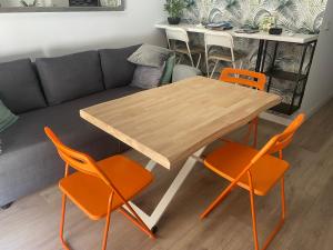 В размещении есть отдельная спальня с двумя кроватями и гостиная зона с паркетным полом из массива дерева и кондиционером для поддержания комфортной температуры. Полностью оснащённая кухня включает холодильник, микроволновую печь, кофемашину и мини-кухню со всем необходимым для приготовления пищи.