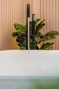 This air-conditioned apartment comprises one separate bedroom along with a living room that includes a sofa bed and seating area. The kitchen comes fully equipped with modern appliances such as a stovetop, refrigerator, microwave, coffee machine and toaster alongside kitchenware and dining table facilities. The bathroom provides both bathtub and shower options along with complimentary toiletries including shampoo and body soap.