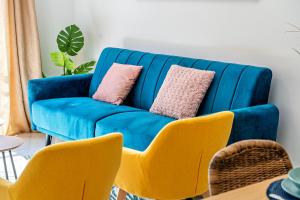 Die Wohnung verfügt über drei separate Schlafzimmer und ein Badezimmer mit Badewanne. Für zusätzlichen Komfort sorgen Klimaanlage und Heizung im gesamten Apartment. Der Wohnbereich bietet eine Sitzecke mit Flachbildfernseher sowie Annehmlichkeiten wie Waschmaschine, Kleiderschrank, Wäscheständer, Bettwäsche, Handtücher, Babybettoptionen und Steckdosen am Nachttisch.