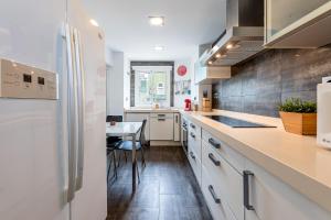 Im Apartment stehen den Gästen vier Schlafzimmer mit insgesamt fünf Betten zur Verfügung. Die voll ausgestattete Küche beinhaltet moderne Geräte wie Backofen, Geschirrspüler, Kühlschrank, Mikrowelle, Kaffeemaschine, Wasserkocher sowie Toaster und Tee-/Kaffeezubereitungsmöglichkeiten. Zwei Badezimmer sind mit Badewannen oder Duschen sowie Haartrocknern ausgestattet. Weitere Annehmlichkeiten umfassen Heizung, Bügeleisen mit Bügelbrett, Handtücher, Bettwäsche, Klimaanlage sowie eine Waschmaschine.