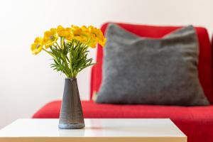 Questo appartamento climatizzato dispone di una camera da letto oltre a un soggiorno con divano letto e area salotto dotata di TV a schermo piatto. L'angolo cottura completamente attrezzato include moderni elettrodomestici quali piano cottura, microonde, tostapane, macchina per il caffè, bollitore elettrico, tavolo da pranzo, utensili da cucina e seggiolone per bambini. Gli ospiti troveranno pavimenti in parquet su tutta la superficie nonché comfort come riscaldamento, aria condizionata regolabile individualmente nella stanza, guardaroba/armadio spazioso, lettino per neonati su richiesta e lavatrice con stendibiancheria.