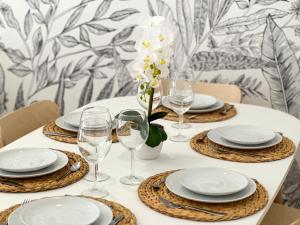 Zur Ausstattung gehören ein Badezimmer mit Dusche, kostenlosen Pflegeprodukten, Duschgel, Haartrockner, WC sowie Badewanne oder Duschangeboten. Die voll ausgestattete Küche verfügt über Kühlschrank, Geschirrspüler, Backofen, Mikrowelle, Kaffeemaschine, Wasserkocher sowie sämtliches notwendiges Kochgeschirr und Essgeschirr einschließlich eines Hochstuhls für Kinder. Zu den weiteren Annehmlichkeiten zählen individuell regelbare Klimaanlage in jedem Zimmer, Bettwäsche, Handtücher, Bügeleisen, Wäscheständer, Schlafsofa, Kleiderschrank/Schrank, Sitzecke, Babybett/Kinderbettchen, Heizung, synthetische Kopfkissen ohne Federn sowie Waschmaschine.
