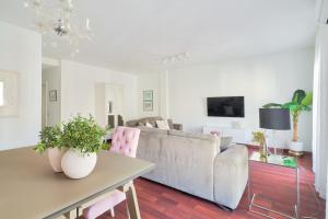 Zu den weiteren Annehmlichkeiten zählen Heizung und eine Waschmaschine innerhalb der Wohnung sowie Unterhaltungsmöglichkeiten wie ein Flachbildfernseher und umfassende Internetdienste einschließlich WLAN in allen Bereichen.