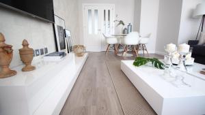Die Unterkunft umfasst einen großzügigen Wohnbereich mit Klimaanlage, zwei separate Schlafzimmer mit insgesamt vier Betten sowie ein privates Badezimmer mit Dusche und Haartrockner. Vom Balkon oder der Terrasse genießen Gäste Stadtblicken. Zur Ausstattung gehören eine Sitzecke und ein Flachbild-Sat-TV. Die voll ausgestattete Küche verfügt über moderne Geräte wie Backofen, Kochfeld, Mikrowelle, Geschirrspüler, Kühlschrank, Kaffeemaschine, Toaster und Wasserkocher sowie Küchenutensilien und einen Esstisch.