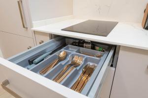El alojamiento dispone de dos dormitorios con un total de tres camas junto con una cocina completamente equipada que incluye cocina americana y cocina completa. La unidad cuenta con un baño, aire acondicionado, calefacción y lavadora para mayor comodidad.
