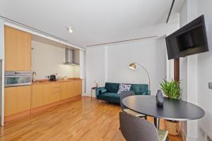 Die Küche des Kusama Studios ist vollständig ausgestattet mit modernen Geräten wie Backofen, Kochfeld, Mikrowelle, Toaster, Kühlschrank, Kaffeemaschine und elektrischem Wasserkocher sowie Tee- und Kaffeezubereitungsmöglichkeiten ergänzt durch Küchenutensilien. Ein Esstisch inklusive Hochstuhl für Kinder rundet das Angebot ab. Die Erdgeschosswohnung bietet private Check-in/Check-out-Services sowie kostenfreies WLAN im gesamten Objekt.