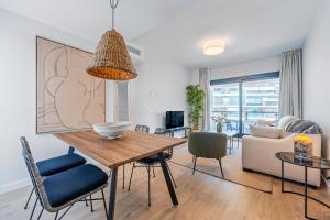 Die Wohnung bietet zwei separate Schlafzimmer mit insgesamt drei Betten sowie zwei Badezimmer mit Dusche und Haartrockner. Der Wohnbereich ist mit einem Flachbildfernseher und einer Sitzecke ausgestattet. Die voll ausgestattete Küche umfasst unter anderem Backofen, Kochfeld, Mikrowelle, Geschirrspüler, Kühlschrank, Kaffeemaschine, Toaster sowie Küchenutensilien. Weitere Annehmlichkeiten sind Klimaanlage im Zimmer, Heizung, Waschmaschinenzugang, Kleiderschrank und Schlafsofa, Handtücher und Bettwäsche werden bereitgestellt.