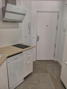 Dieses klimatisierte Apartment verfügt über ein Schlafzimmer mit einem Bett sowie ein Badezimmer mit Dusche und Haartrockner. Die Küche ist vollständig ausgestattet mit Kühlschrank, Geschirrspüler, Mikrowelle, Kaffeemaschine, Toaster, Kochgeschirr und einem Essbereich zur bequemen Zubereitung von Mahlzeiten. Zur Ausstattung im Zimmer gehören zudem ein Kleiderschrank oder eine Garderobe, eine Waschmaschine, eine Sitzecke mit Sofa sowie Handtücher und Bettwäsche aus synthetischen Kissen ohne Federn, Heizung, Bügeleisen, Wäscheständer, und ein Flachbildfernseher.