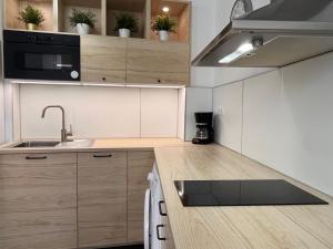 Im Apartment finden Gäste zwei Betten sowie eine voll ausgestattete Küche mit Kochgeschirr, Herdplatte, Kühlschrank, Mikrowelle, Toaster und Wasserkocher vor, außerdem gibt es einen Esstisch. Das Badezimmer verfügt über eine ebenerdige Dusche sowie kostenfreie Pflegeprodukte wie Shampoo und Duschgel. Weitere Ausstattungsmerkmale sind individuell regulierbare Klimaanlage, Heizung, Fliesen- oder Marmorboden, Bettwäsche und Handtücher, Bügeleisen mit Bügelmöglichkeit, Kleiderschrank oder Schrankfläche, Sitzbereich einschließlich Schlafsofa, Schreibtisch, synthetische Kopfkissen ohne Federn neben Federkissen, Waschmaschine sowie Wäschetrocknerständer.