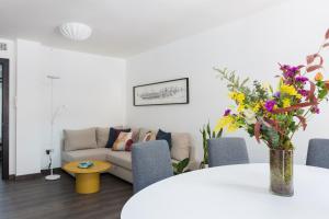 Dieses klimatisierte Apartment verfügt über drei separate Schlafzimmer sowie ein Wohnzimmer mit Flachbildfernseher. Die Küche ist voll ausgestattet mit modernen Annehmlichkeiten wie Geschirrspüler, Kühlschrank, Mikrowelle, Backofen, Tee- und Kaffeezubereitungsmöglichkeiten sowie einer Kochnische. Zudem stehen ein Wäschetrockner für Kleidung sowie ein Hochstuhl für Kinder zur Verfügung. Zwei Badezimmer sind jeweils mit Duschen ausgestattet, Toilettenartikel wie Duschgel und Shampoo sind vorhanden.