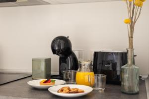 Im Apartment gibt es ein Schlafzimmer sowie ein Wohnzimmer mit Schlafsofa und Flachbildfernseher mit Streaming-Diensten wie Netflix. Die voll ausgestattete Küche verfügt über Backofen, Mikrowelle, Kochfeld, Kühlschrank, Kaffeemaschine, Wasserkocher, Toaster sowie notwendiges Küchenzubehör und einen Esstisch. Zur Ausstattung zählen außerdem individuell regulierbare Klimaanlage zur Komfortsteigerung, Bügeleisen, Waschmaschine, Wäscheständer, Schreibtisch, Heizung, Bettwäsche und Handtücher werden bereitgestellt.