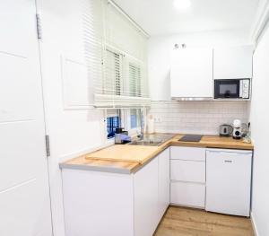 Das Apartment verfügt über ein Schlafzimmer mit einem Bett sowie ein privates Bad mit Dusche, Haartrockner sowie Shampoo-, Conditioner- und Duschgelspendern. Zur weiteren Ausstattung gehören schallisolierte Räume mit Klimaanlage, Holzbodenbelag und Heizung für zusätzlichen Komfort. Die voll ausgestattete Küche umfasst einen Kühlschrank, Mikrowelle, Toaster, Kaffeemaschine und Wasserkocher sowie vollständiges Kochgeschirr für die Selbstverpflegung.