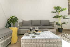 Zu den Serviceleistungen des Precioso apartamento con Patio zählen auf Anfrage gegen Gebühr ein Flughafentransfer inklusive Abhol- und Bringservice. Die Rezeption ist rund um die Uhr besetzt und bietet Unterstützung bei Tourenbuchungen an. Das Erdgeschossapartment verfügt über durchgehend verfügbares Internet via kostenfreiem WLAN, außerdem ergänzt Gartenmöbel den Essbereich auf dem Balkon.