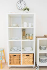 Die klimatisierte Wohnung umfasst zwei separate Schlafzimmer mit insgesamt zwei Betten sowie eine voll ausgestattete Küche mit Kochgeschirr für den Küchenbedarf und ein privates Badezimmer. Den Gästen stehen zudem eine Waschmaschine und ein Fernseher zur Verfügung.