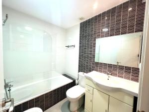 The air-conditioned apartment comprises one separate bedroom, a living room with a sofa bed, and one bathroom equipped with a bathtub or shower, bidet, hairdryer, complimentary toiletries and body soap. Guests will find an open kitchen area featuring full kitchen facilities such as a stovetop, microwave, coffee machine, electric kettle, toaster and refrigerator along with kitchenware and dining table for convenient meal preparation.