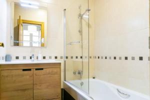 The apartment includes one bedroom with two beds, a private bathroom, heating facilities, and an in-unit washing machine for added convenience. Guests can also enjoy air conditioning throughout the space as well as entertainment on the flat-screen TV.