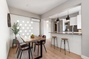 Die komplett eingerichtete Küche umfasst Kochutensilien, einen Esstisch, Kühlschrank, Geschirrspüler, Mikrowelle, Toaster, Wasserkocher sowie Tee- und Kaffeezubereitungsmöglichkeiten. Weitere Annehmlichkeiten sind kostenloses WLAN im gesamten Apartment, Klimaanlage, Heizung, Waschmaschine mit Wäscheständer, Bügeleisen und Bügelbrett sowie nicht federnde Kissen, Handtücher und Bettwäsche. Ein Schrankraum und ein Schlafsofa mit Sitzbereich sowie ein Arbeitstisch stehen ebenfalls zur Verfügung.