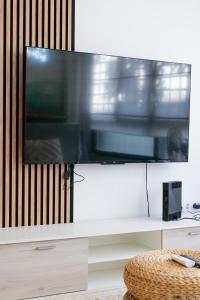 The studio features two beds along with air conditioning and heating to ensure comfort year-round. Its fully equipped kitchen includes a stovetop, refrigerator, microwave, coffee machine, electric kettle, kitchenware as well as a dining area complete with a high chair for children. Guests will also find a washing machine and an iron available in the apartment.