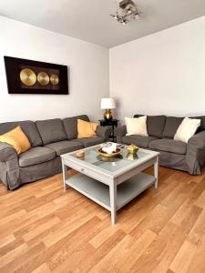 Das geräumige Apartment besteht aus einem Wohnzimmer und drei separaten Schlafzimmern mit insgesamt vier Betten. Die voll ausgestattete Küche verfügt über Backofen, Herdplatte, Kühlschrank, Geschirrspüler, Mikrowelle, Kaffeemaschine, Wasserkocher sowie Tee- und Kaffeezubereitungsmöglichkeiten und sämtliches notwendiges Kochgeschirr. Den Gästen stehen zwei Badezimmer mit Badewannen oder Duschen sowie Bidets zur Verfügung, Handtücher und Haartrockner werden bereitgestellt.