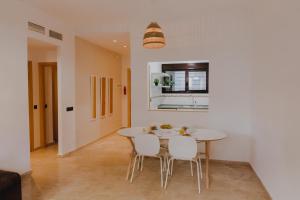 Zur Ausstattung gehören zwei Schlafzimmer mit Fliesenboden sowie ein Badezimmer mit Dusche, Bidet, Haartrockner und kostenlosen Pflegeprodukten. Die voll ausgestattete Küche beinhaltet Backofen, Mikrowelle, Toaster und Kaffeemaschine sowie einen Esstisch zur Mahlzeitenzubereitung.
