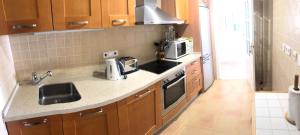 Гости имеют полный доступ к полностью оборудованной мини-кухне со стеклокерамической плитой, холодильником, посудомоечной машиной, микроволновой печью, духовкой, тостером, кофеваркой, электрическим чайником, кухонная посуда имеется в наличии. Обеденный стол расположен у барной стойки, предусмотрено детское кресло высокого уровня. Для одежды доступна сушилка для белья.