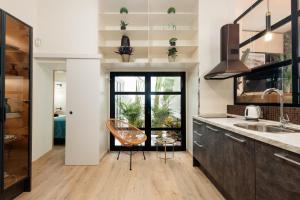 Die Unterkunft verfügt über ein Schlafzimmer sowie zwei Badezimmer mit Dusche und kostenfreien Pflegeprodukten. Die voll ausgestattete Küche beinhaltet Kochfeld, Kühlschrank, Geschirrspüler, Mikrowelle, Toaster, Wasserkocher, Kaffeemaschine sowie vollständiges Küchenzubehör. Zu den weiteren Ausstattungsmerkmalen zählen individuell regelbare Klimaanlage im Zimmer, Parkettboden, Waschmaschine, Bügeleisen mit Bügelbrett sowie ein Sitzbereich mit Sofa und Esstisch.
