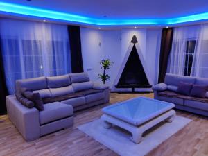 Die Villa umfasst fünf separate Schlafzimmer, zwei Badezimmer mit bereitgestellter Körperseife sowie eine voll ausgestattete Küche mit Herdplatte, Kühlschrank, Geschirrspüler, Backofen sowie Tee- und Kaffeezubereitungsmöglichkeiten. Die Zimmer sind mit Heizung, Bettwäsche, Handtüchern, Klimaanlage, Waschmaschinenzugang und einem Flachbildfernseher für zusätzlichen Komfort ausgestattet.