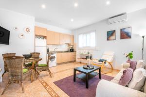 Die Unterkunft verfügt über einen privaten Eingang zum Schlafzimmer sowie ein separates Wohnzimmer mit Schlafsofa und Sitzbereich. Die ausgestattete Küche beinhaltet eine Küchenzeile mit Kochfeld, Kühlschrank, Mikrowelle, Toaster, Kaffeemaschine und einem Esstisch für zusätzlichen Komfort während des Aufenthalts. Das Badezimmer ist mit Badewanne ausgestattet und bietet kostenlose Pflegeprodukte wie Shampoo und Duschgel.